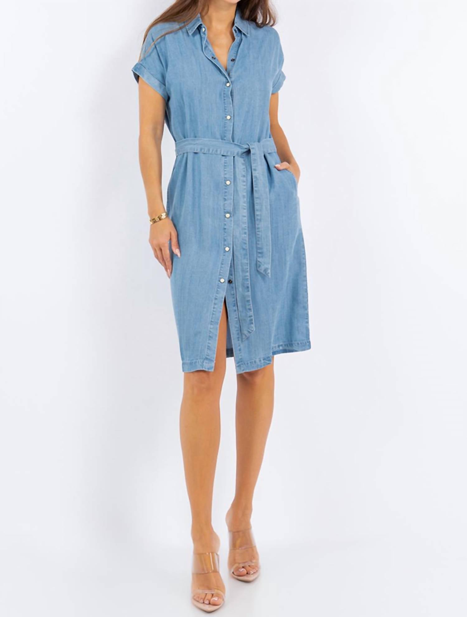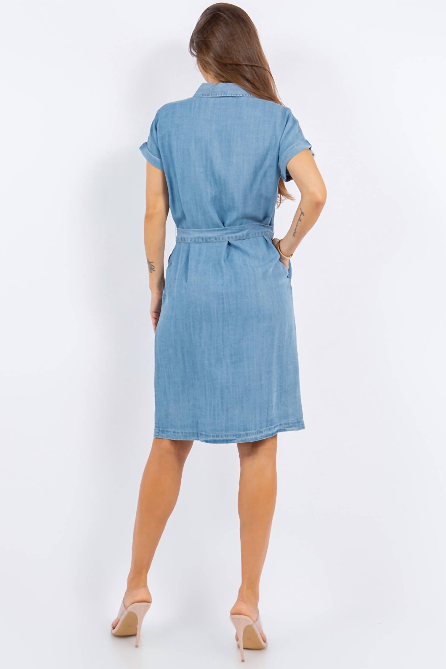 Paparazzi - Tencel Denim Short Sleeve Shirt Dress With Belt