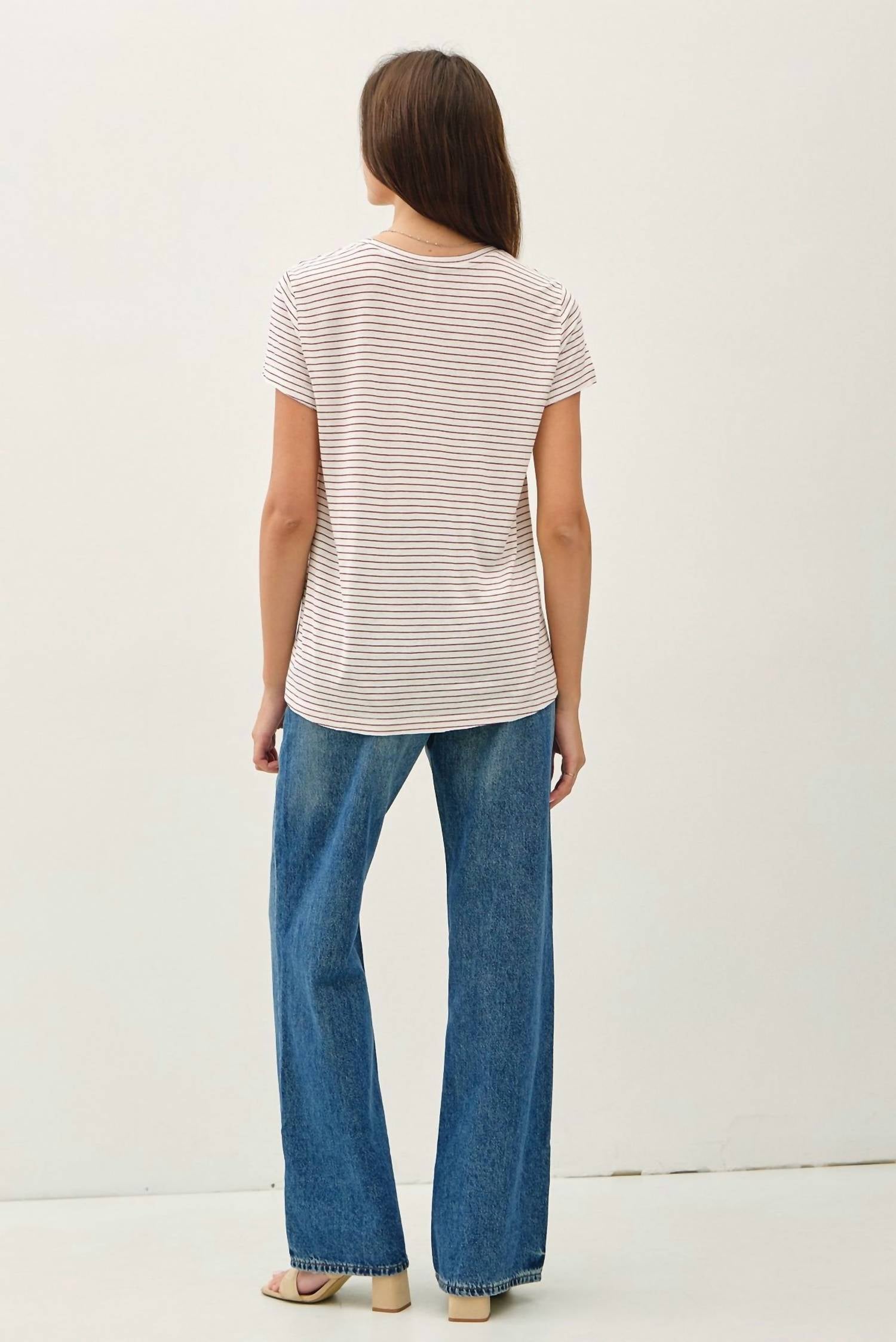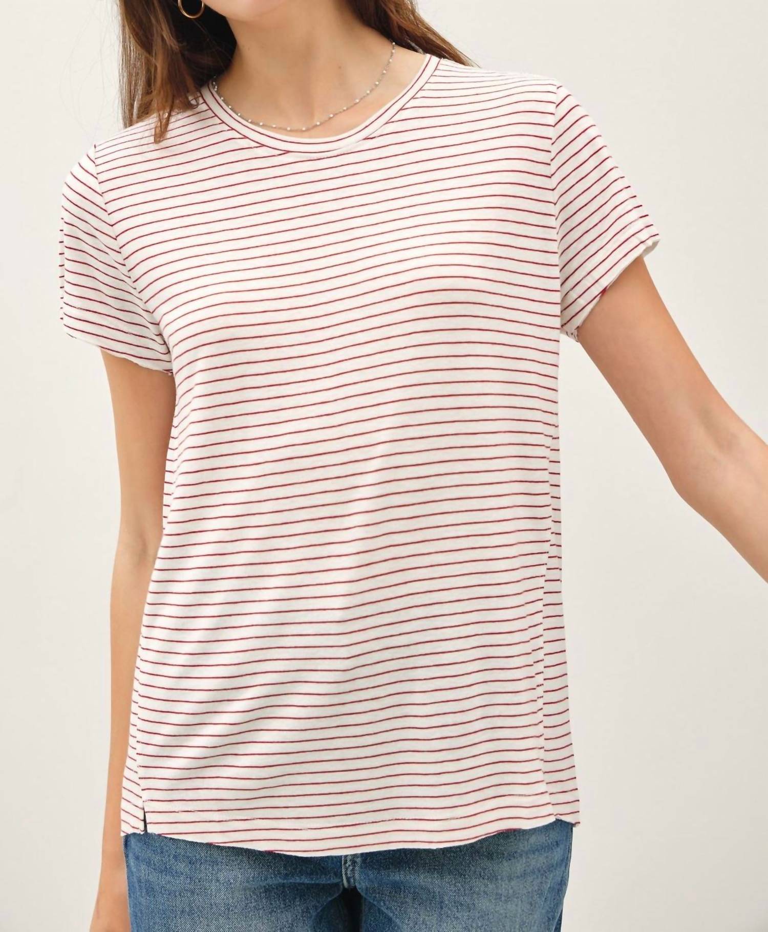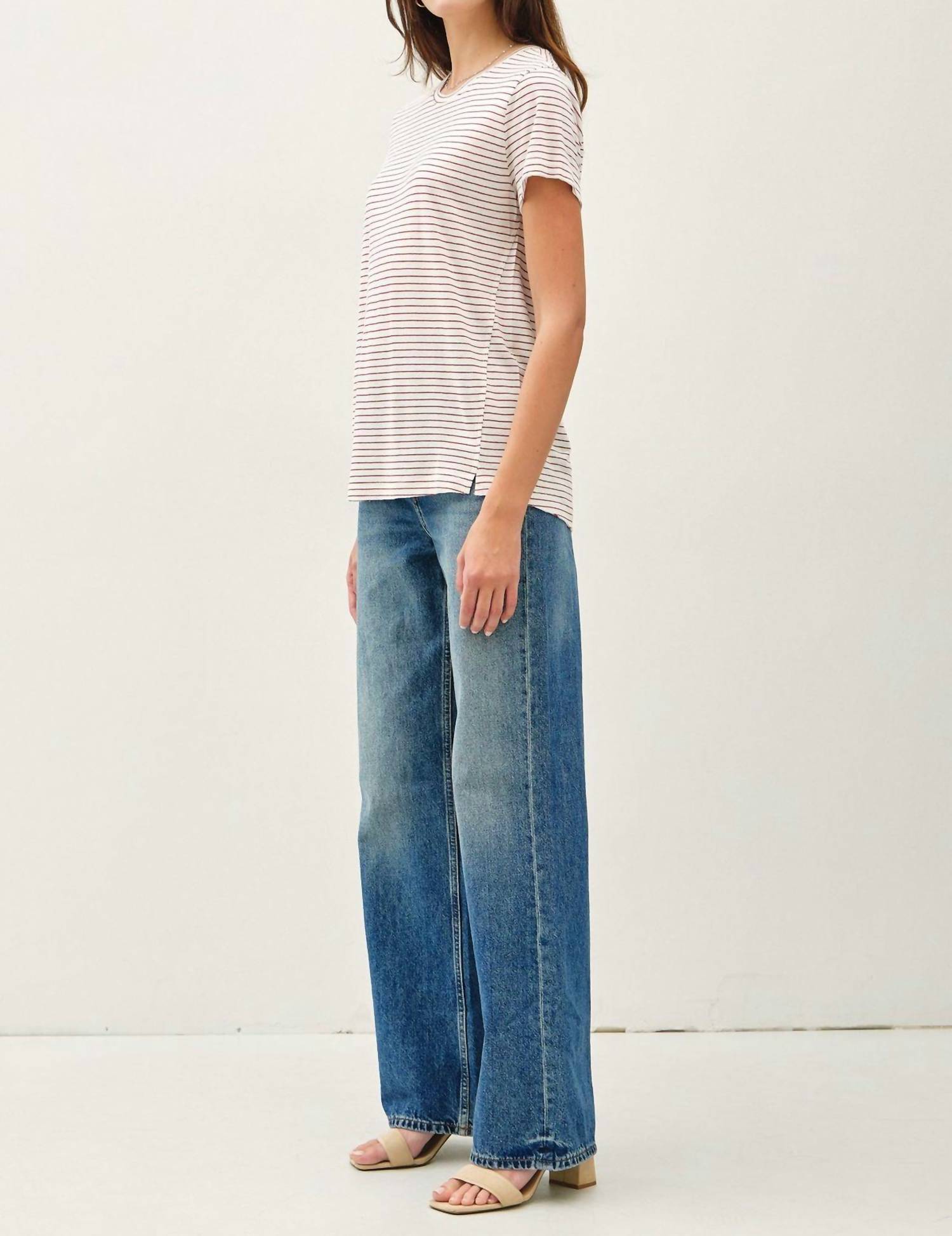 The short sleeve tee you'll want in every color. This is an everyday relaxed-fit tee with small side slits, made from a lightweight fabric. It contains 58% cotton, 28% linen, and 17% rayon.