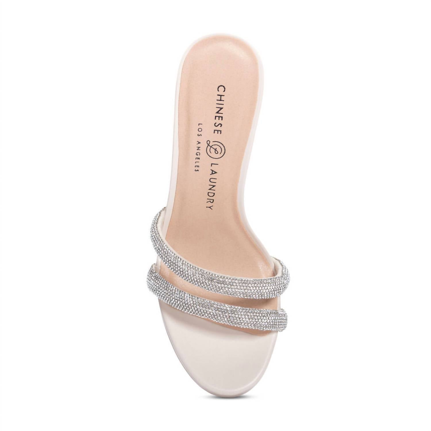 This sandal will take you from brunch to dinner and everything in between.This strappy pair slides on with ease features a modern square toe and is detailed in a dainty way with rhinestones on the straps. By Chinese Laundry. Details: Rhinestone straps, strappy slide, stiletto heel for extra sexy appeal. Perfect for your next date night or wedding. Manmade materials. 3" heel.