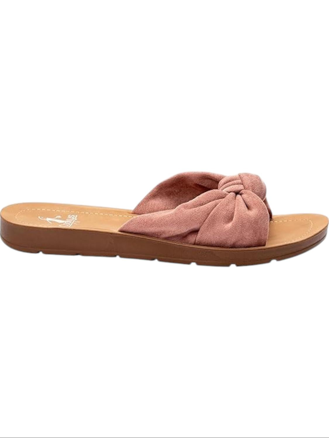 Classicly cute and all-day-wearable. We love this sandal. Slip-on design. Knot detail. Comfortable insoles. Made in USA or imported.