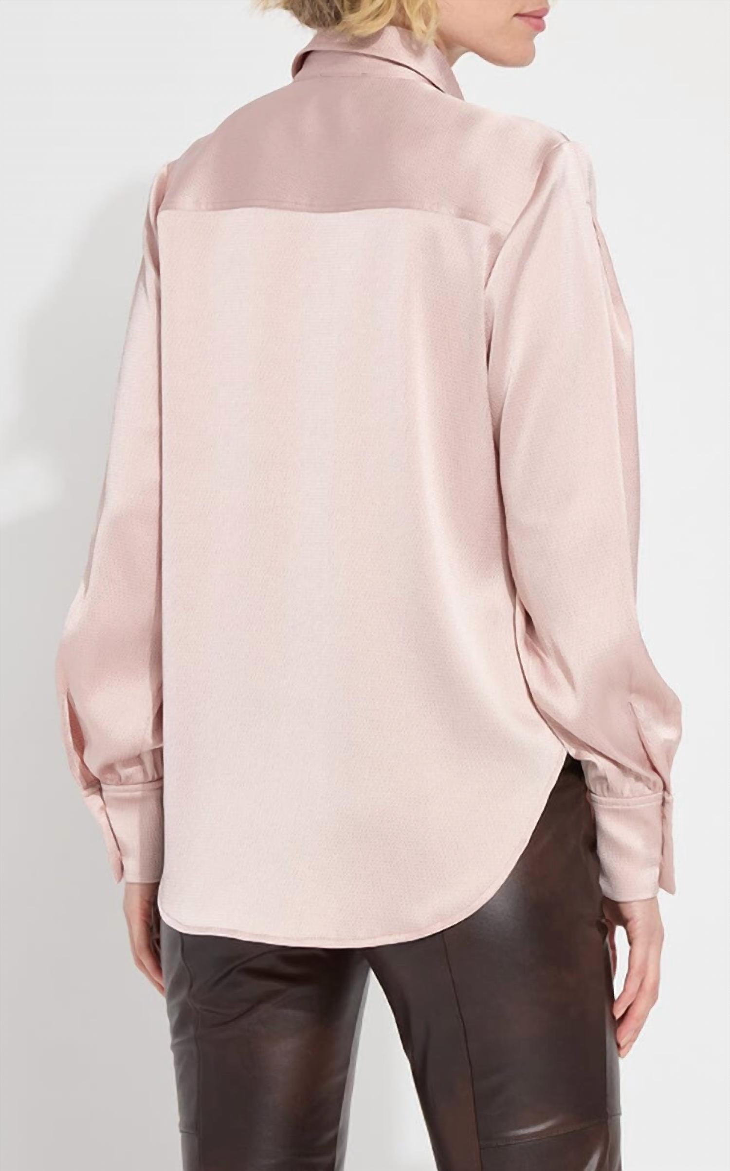 Fashioned by Lysse in an ethereal Ant Rose hue, the Zoe Blouse brings an elegant touch to any Spring dinner party. This minimalist piece features long sleeves crafted from textured polyester, ensuring a soft and luxurious feel. Designed with practicality in mind, it includes front patch pockets and a button closure for easy wear. Care is a breeze with machine washing and line drying instructions.