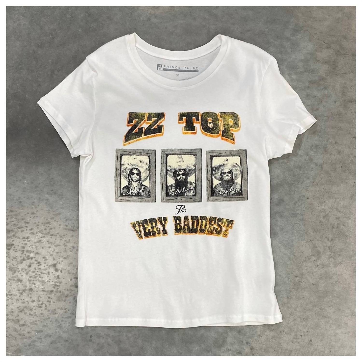 The short sleeve tee you'll want in every color. Unveil your edgy style with the Zz Top Baddest Tee by PRINCE PETER, a must-have for your summer wardrobe. Designed with short sleeves and crafted from soft cotton, this white tee is perfect for women who love streetwear vibes. Featuring a graphic pattern and a crewneck, it's an ideal choice for music festivals. Closure: Pull on. Care instructions: N/A.