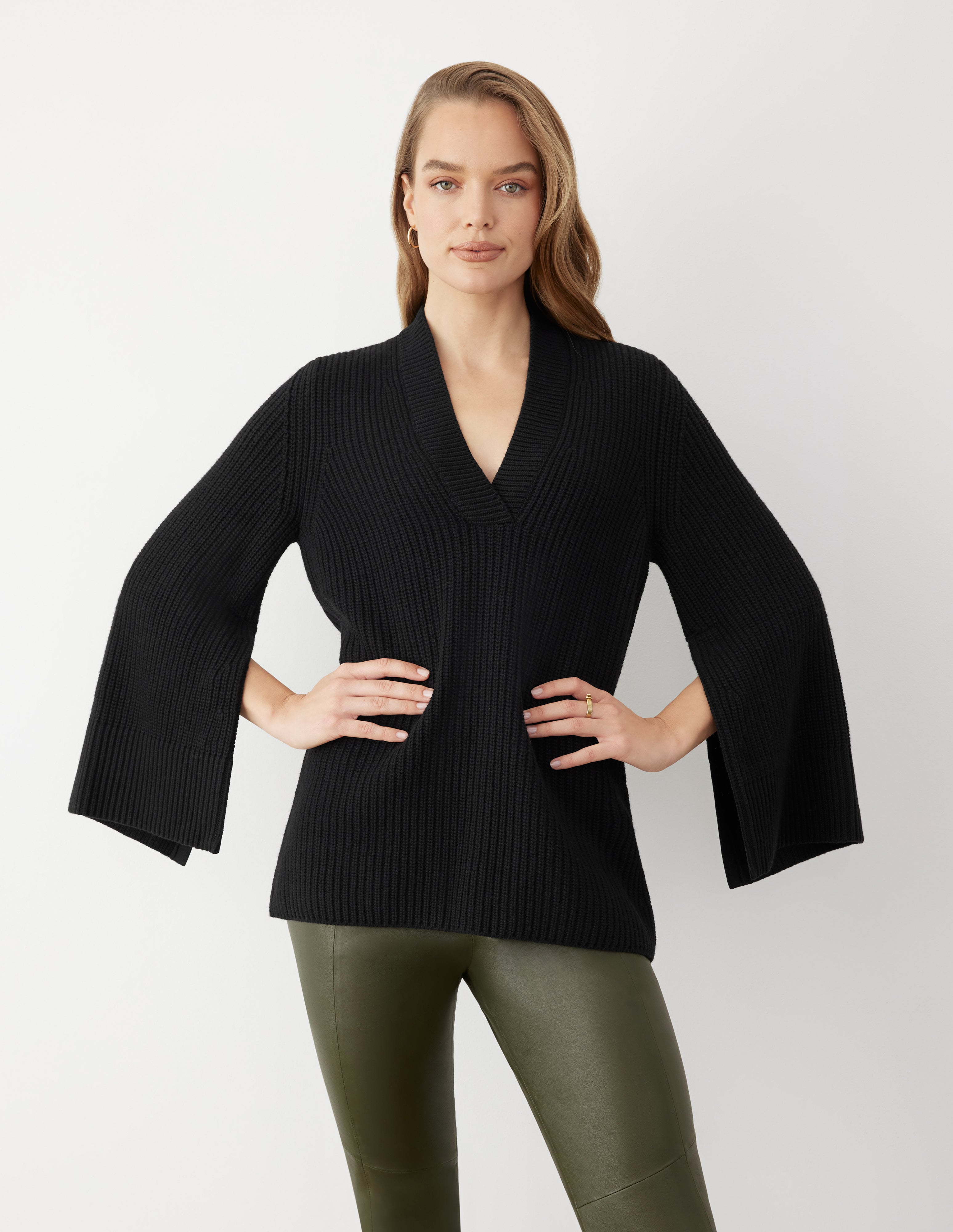 Bring effortless style to your wardrobe with our snap sleeve v-neck sweater. This sweater features unexpected details for a fresh take on a classic style.