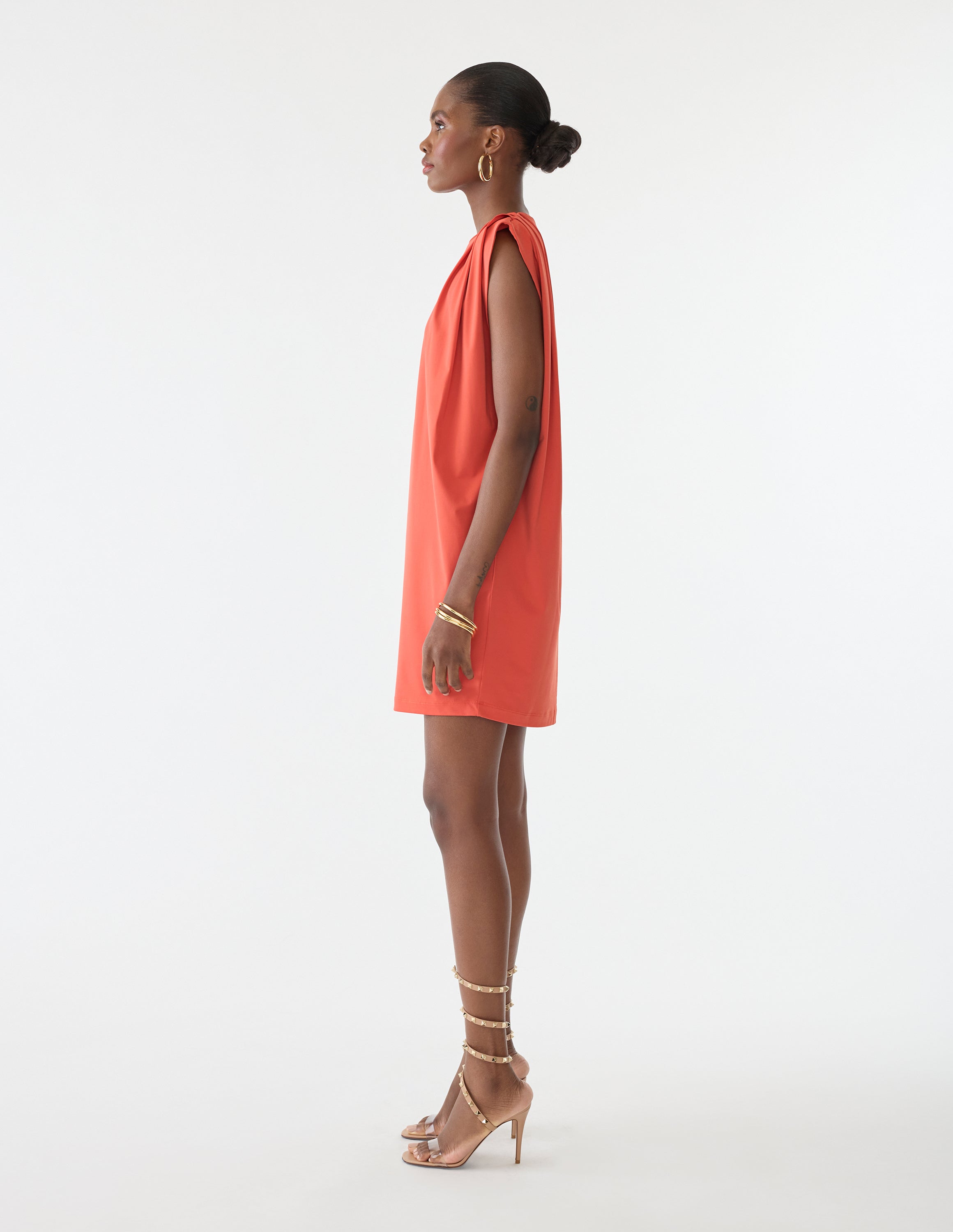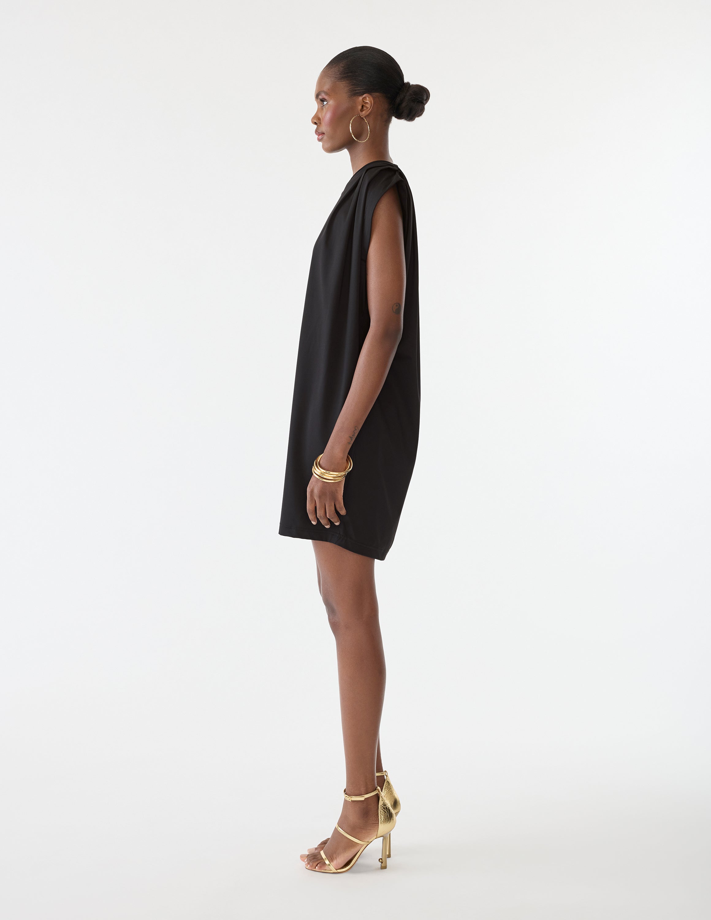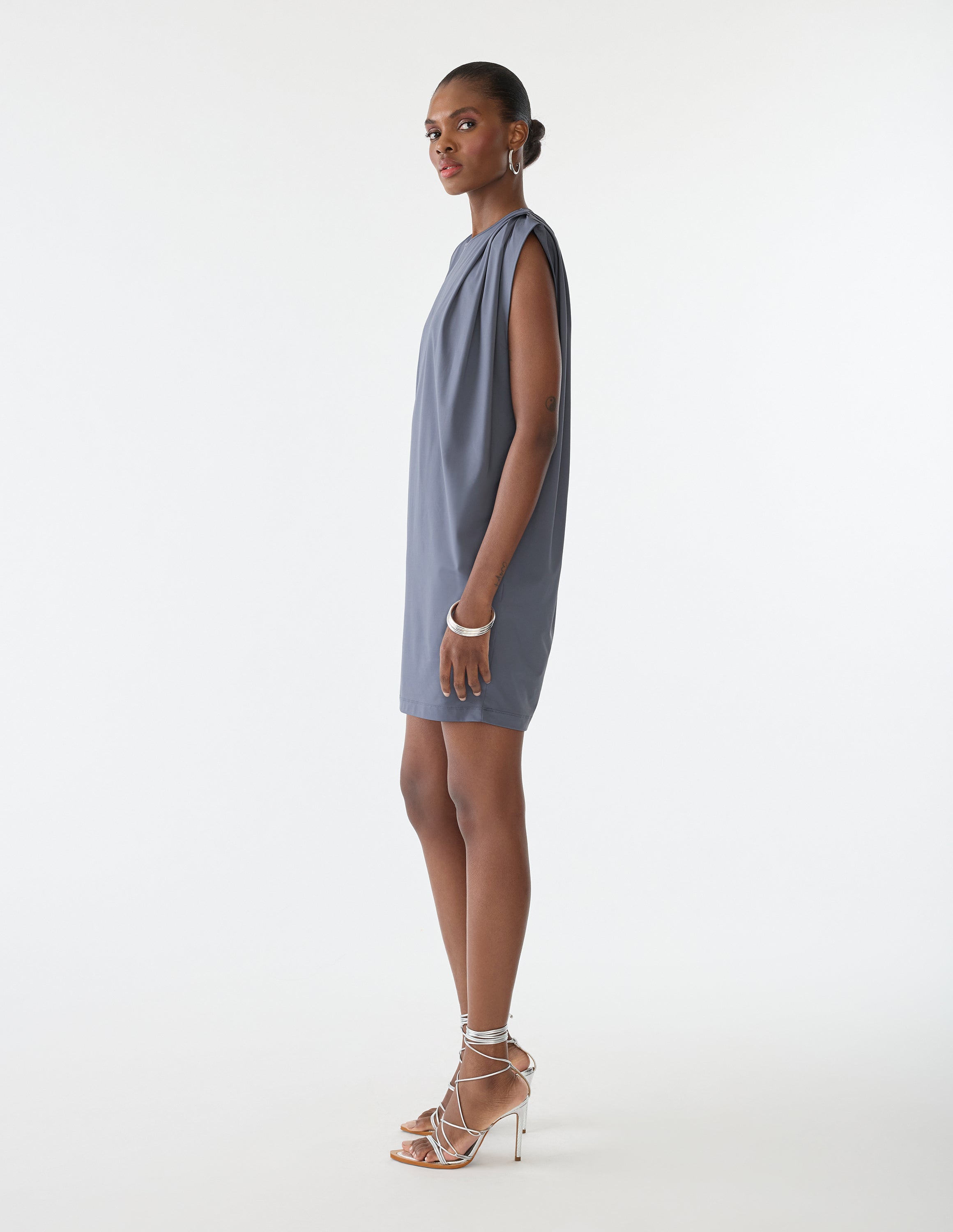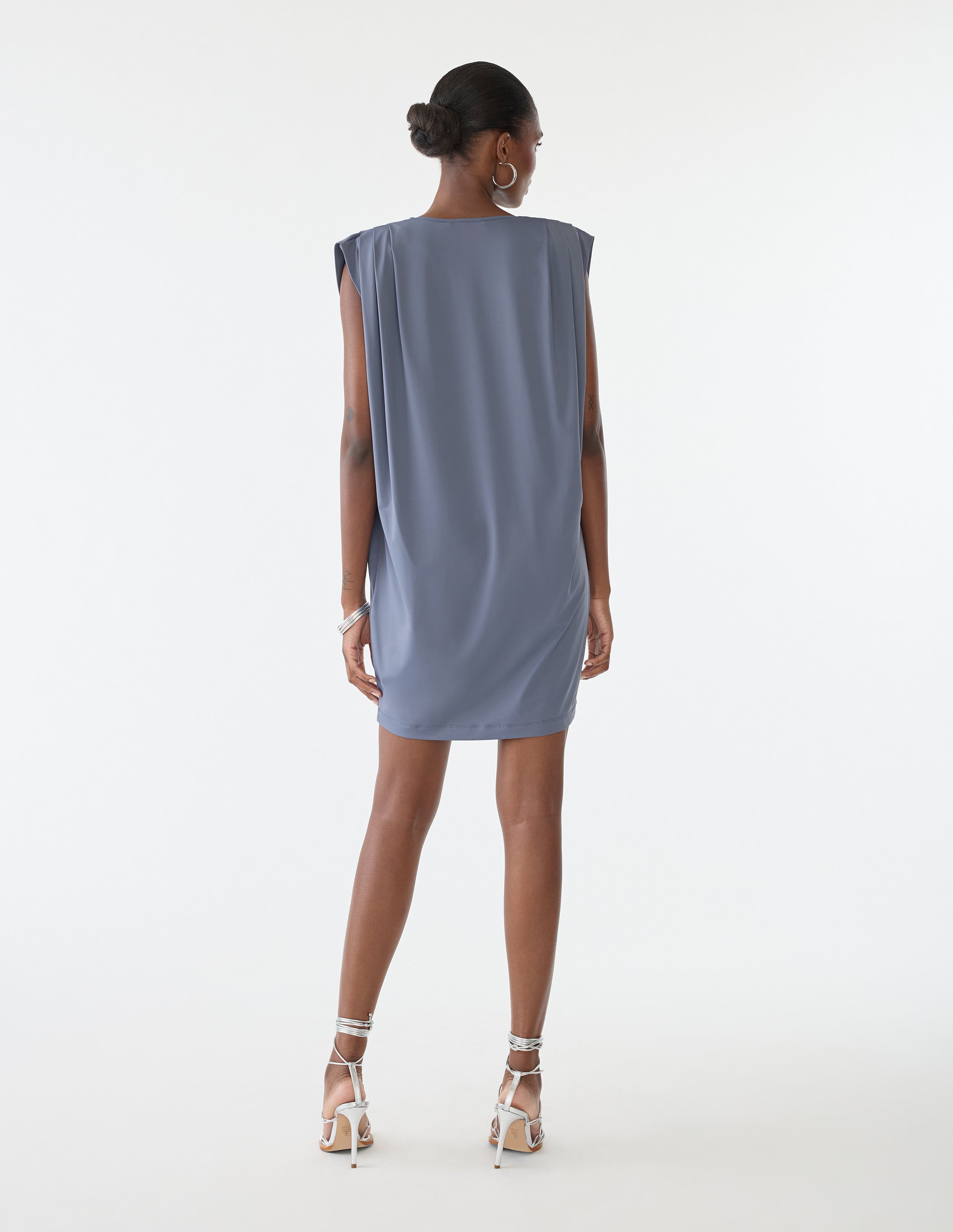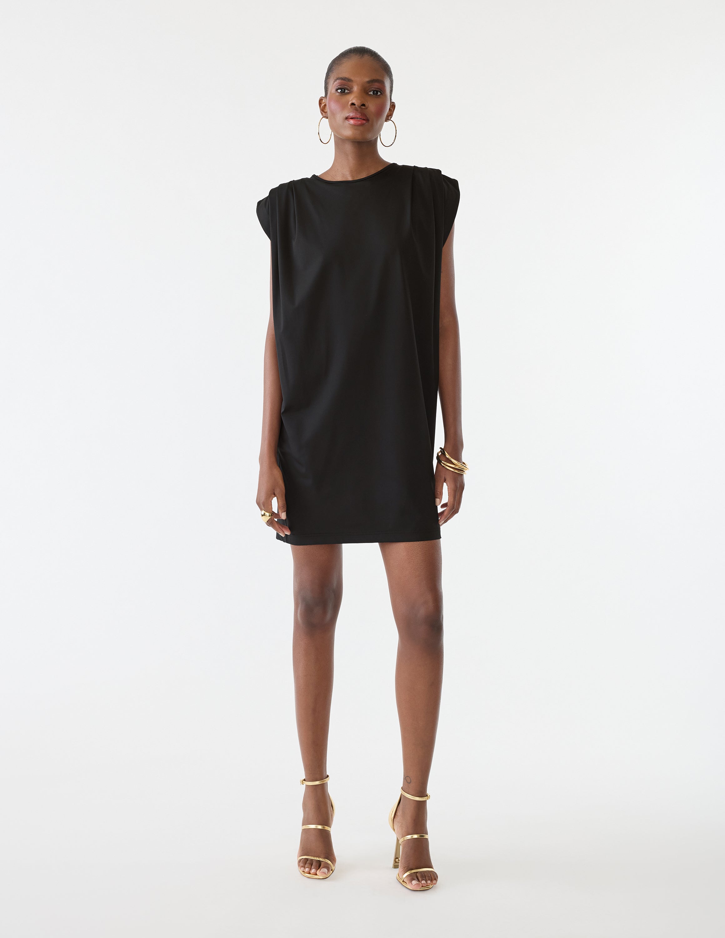 Maximize your power in our Everyday Dress. Defiant pleated shoulder pads paired with easy stretch fabric means you're comfortable and confident through and through. -