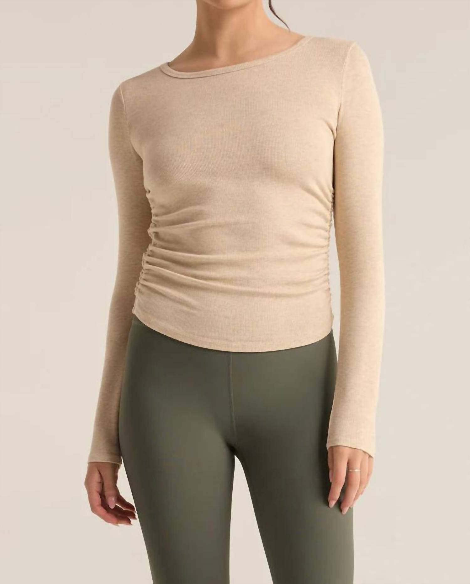 The perfect long sleeve tee that goes with just about anything. Introducing the It's A Cinch Top by Z Supply, a stylish women's piece in Light Oatmeal Heather. This long sleeve top is crafted from a midweight rib fabric composed of 95% Rayon and 5% Spandex, featuring a contoured fit and a classic crew neck. Designed for both warmth and style, it's perfect for a dinner party or as a versatile addition to your spring wardrobe. Care: Machine wash cold on a gentle cycle and lay flat to dry.