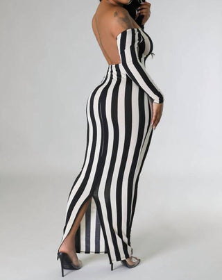 Bibi - Glamory Side-tie Striped Sweater Knit Top