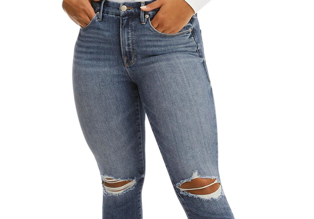 Good American Women's Black High Rise Destroyed Stovepipe Jeans Size M