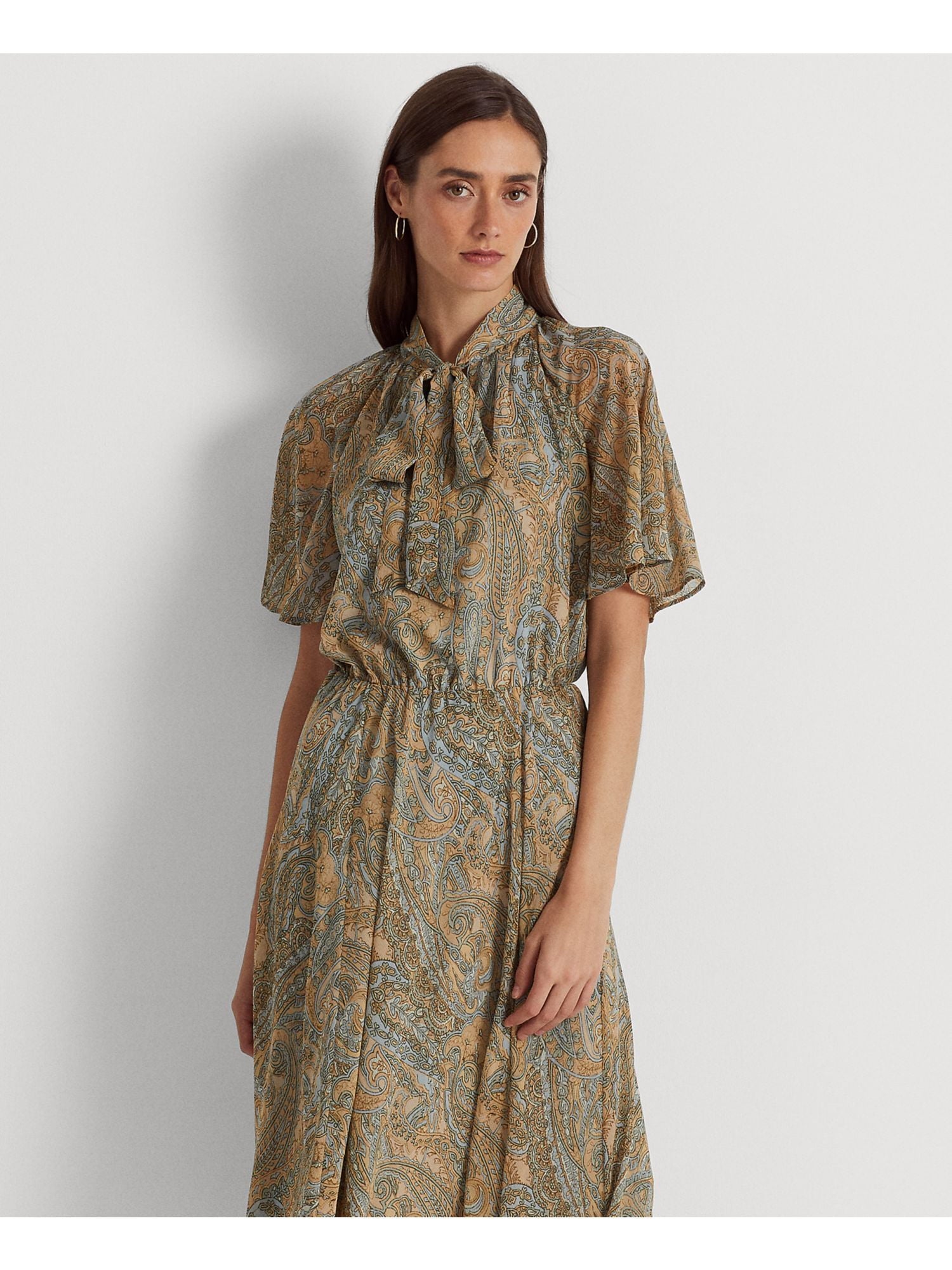 Ralph Lauren|Style; Dress|Occasion; Wear To Work|Size; 10|Material; 100% Polyester|Color; Light Blue|Tie Neck