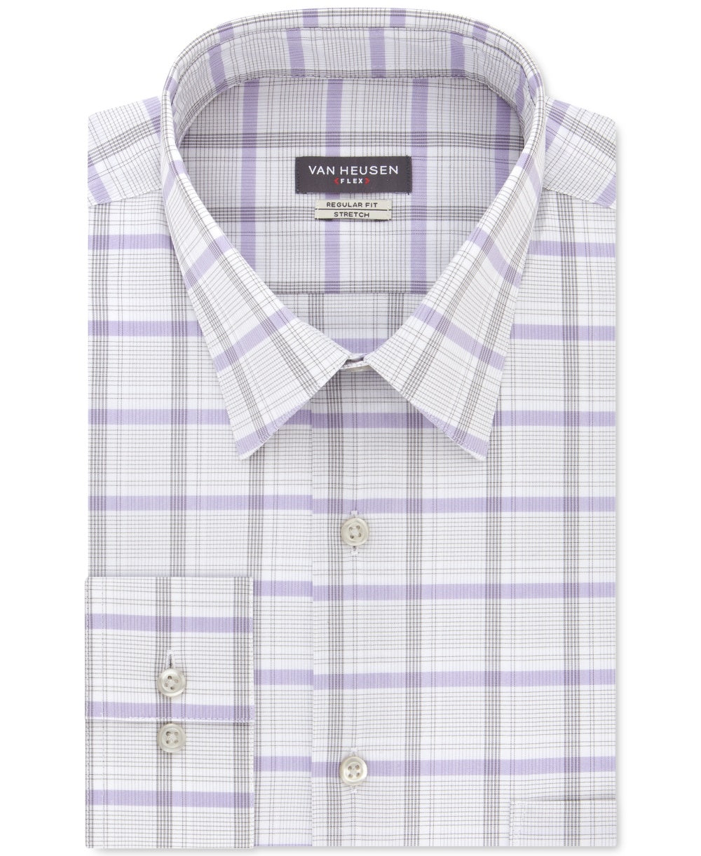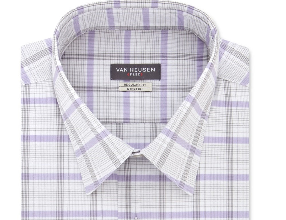 Van Heusen Men's Classic/Regular-Fit Wrinkle-Free Performance Stretch Flex Collar Check Dress Shirt Gray Size 18X36-37