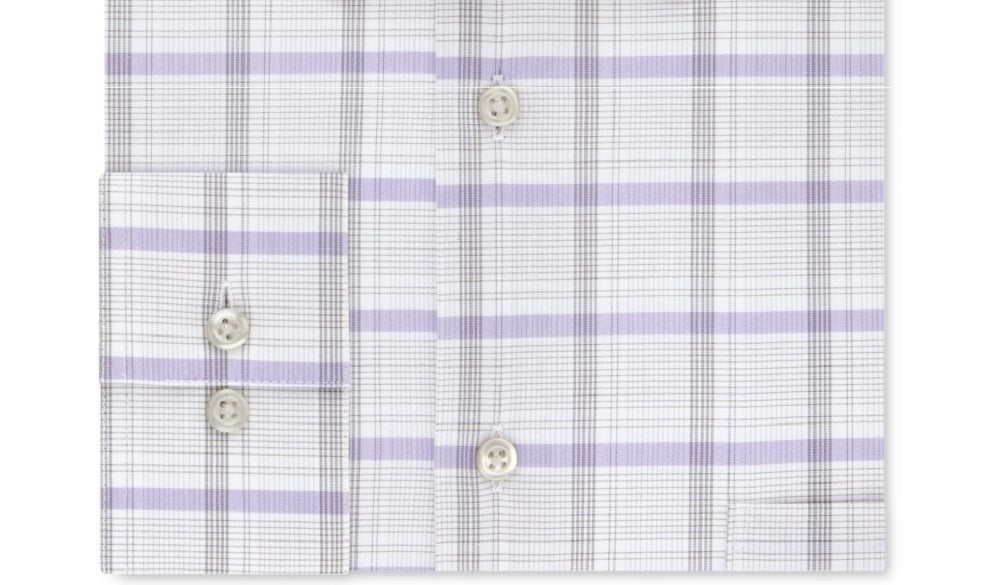 A classic fit, also known as a regular fit, offers a generous cut throughout the chest and waist for overall ease; features standard armholes and fuller sleeves|Flex point collar expands up to 1/2"|Barrel button cuffs|Check pattern; patch pocket at left chest|Stretch performance; wrinkle-free fabric|Cotton/polyester/elastane