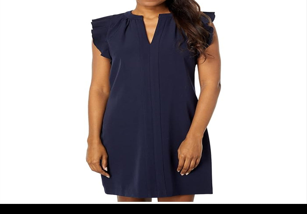 Crepe front construction | Chiffon back detail | Shift dress silhouette | Elegant pullover style | Round neckline | Sleeveless | Unlined for comfort | Hits above knee | Vince Camuto Design | Versatile for occasions | Easily Paired with Accessories | High-quality Material | Machine Washable
