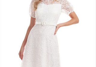 Kay Unger Women's White Wynonna Belted Illusion Lace Gown Size 2