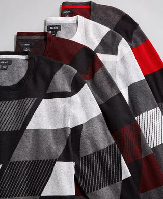 Alfani Men's Abstract Jacquard Crewneck Sweater Red Size Large