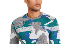 Alfani Men's Abstract Jacquard Crewneck Sweater Green Size Large