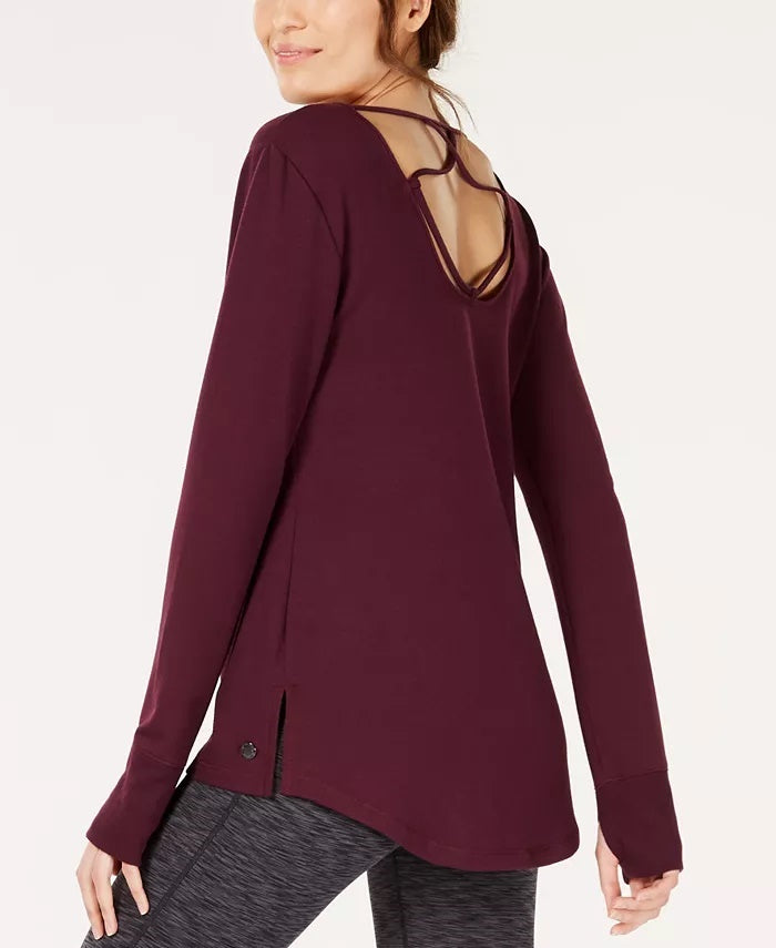 Ideology Women's Lattice-Back Long-Sleeve Tunic Dark Red Size X-Small
