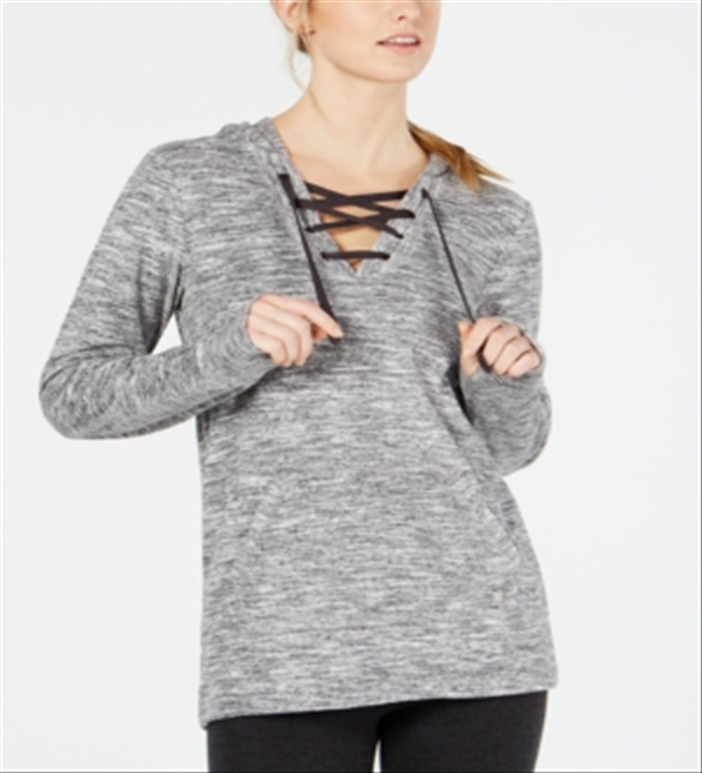 Ideology Women's Lace up Sweatshirt Hoodie Gray Size X-Large