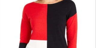 Alfani Women's Drop Shoulder Colorblocked Top Red Size Petite L