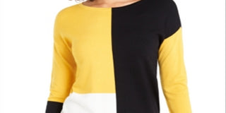 Alfani Women's Drop Shoulder Colorblocked Top Mustard Size Petite S/M