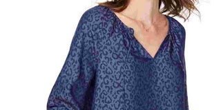 NYDJ Women's Pleated Blouse Blue Size X-Large