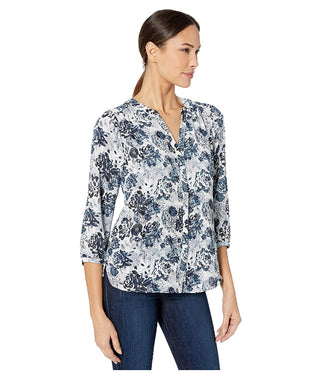 NYDJ Women's Pintuck Blouse in Bay Blues Garden Size: XS