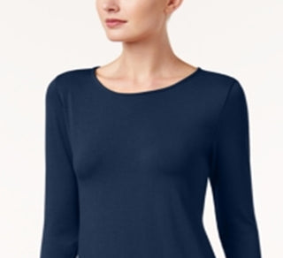 Alfani Women's High Low Mixed Media Pullover Top Blue Size Large