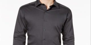 Alfani Men's Athletic Fit Wrinkle Resistant Button Down Shirt Gray Size -M