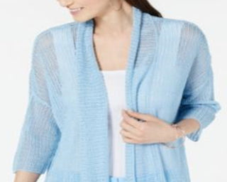 Alfani Women's Linen Blend Open Stitch Kimono Blue Size Small
