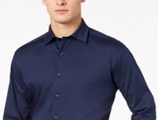 Alfani Men's Big & Tall Solid Dress Shirt Blue Size 20T