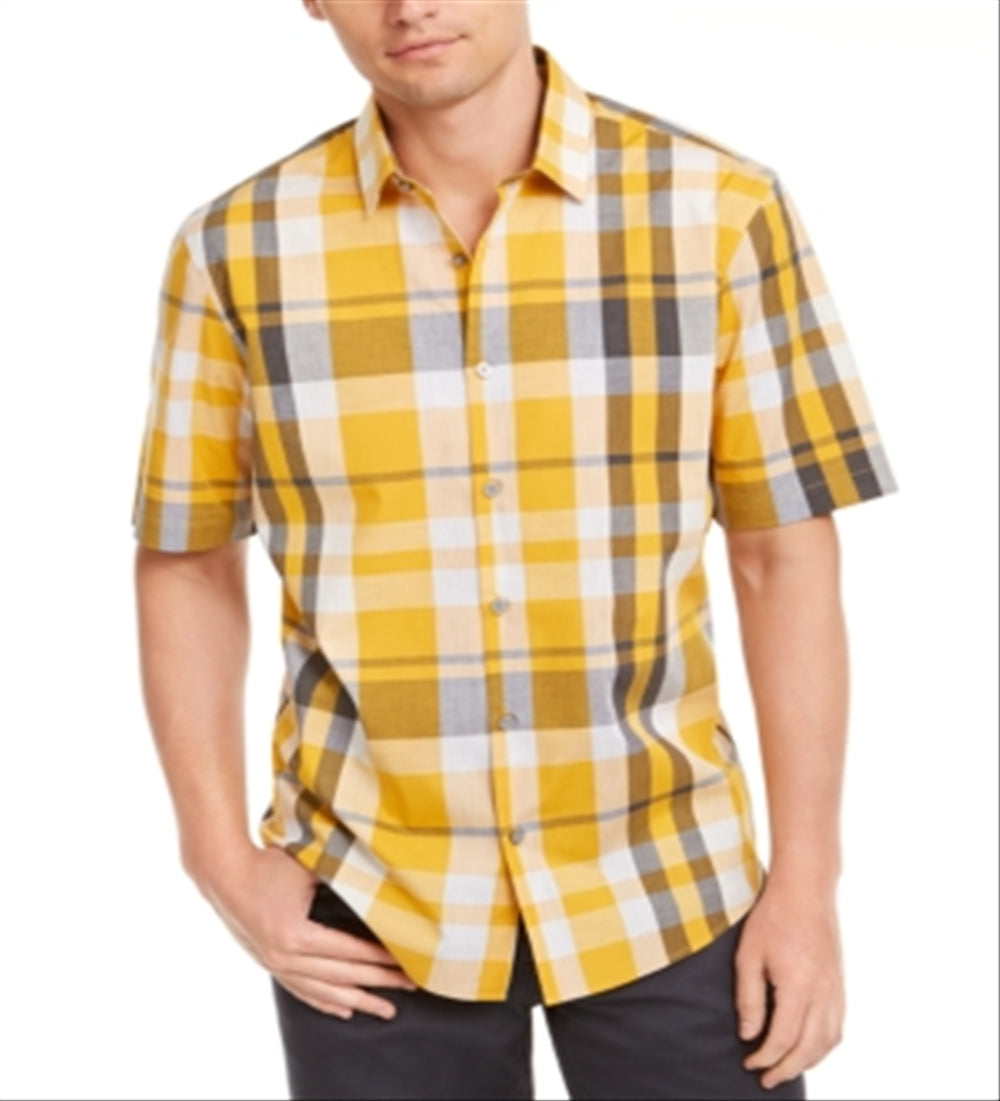 Alfani Men's Regular Fit 2 Way Stretch Herringbone Dress Shirt Brown Size 34X35