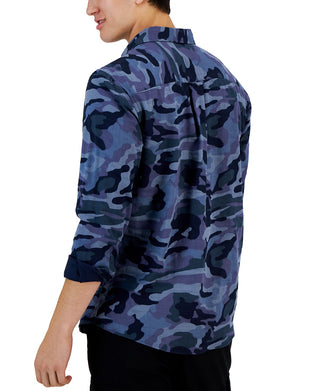 Alfani Men's Camo Print Button Front Long-Sleeve Pocket Shirt Blue Size Medium