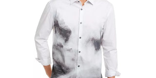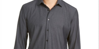 Alfani Men's Button Front Long Sleeve Casual Shirt Grey Size X-Large