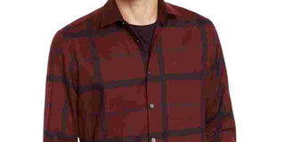 Alfani Men's Burgundy Check Long Sleeve Classic Fit Button Down Casual Red Size Medium