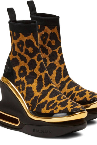 Balmain - Women's Leopard B-bold Wedge High-top Sneakers