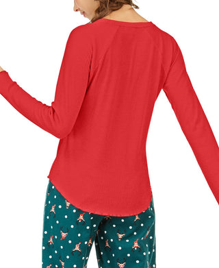 Jenni Women's Ribbed Solid Sleepwear Shirt Red Size X-Small