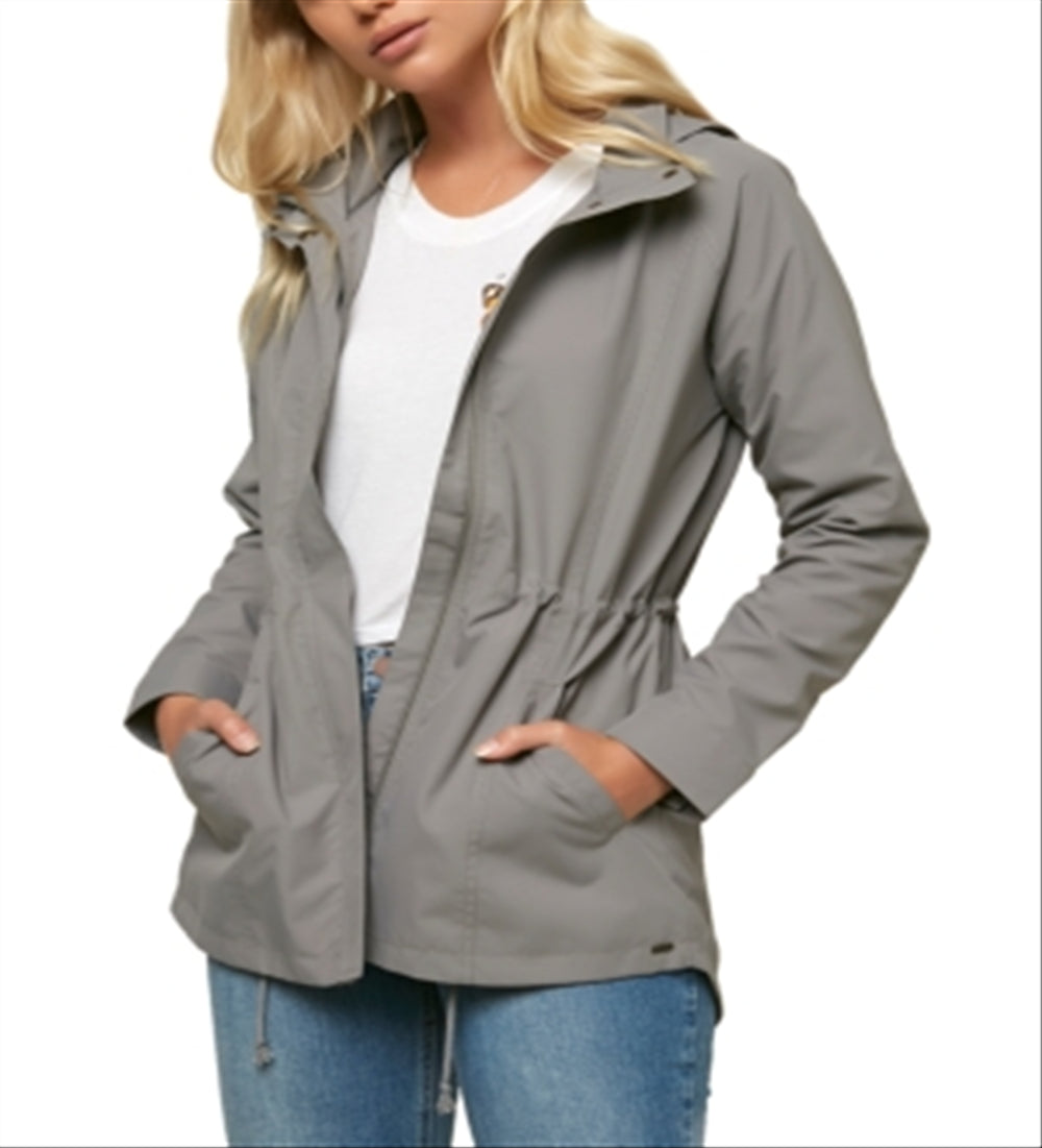 O'Neill Women's Gayle Hooded Water Resistant Windbreaker Jacket Gray Size X-Small
