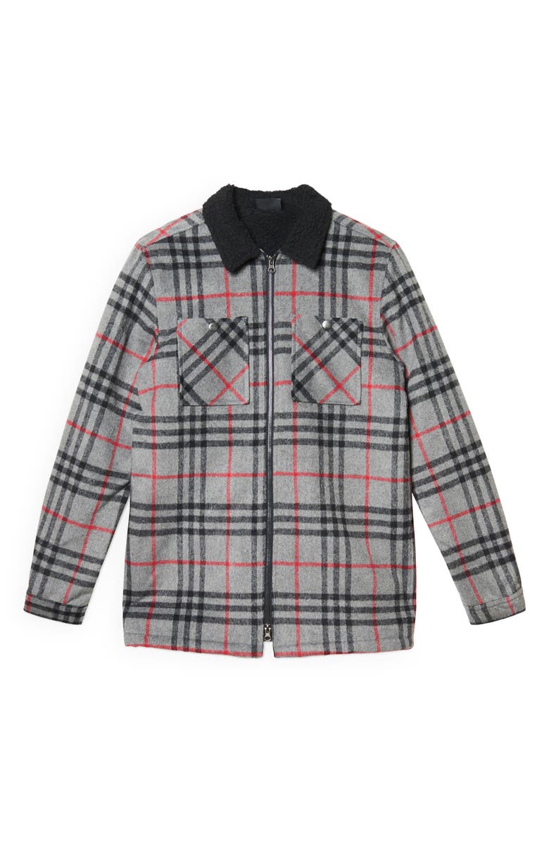 Versace Men's Liam Plaid Fleece Lined Full Zip Shirt Jacket Gray Size S/M