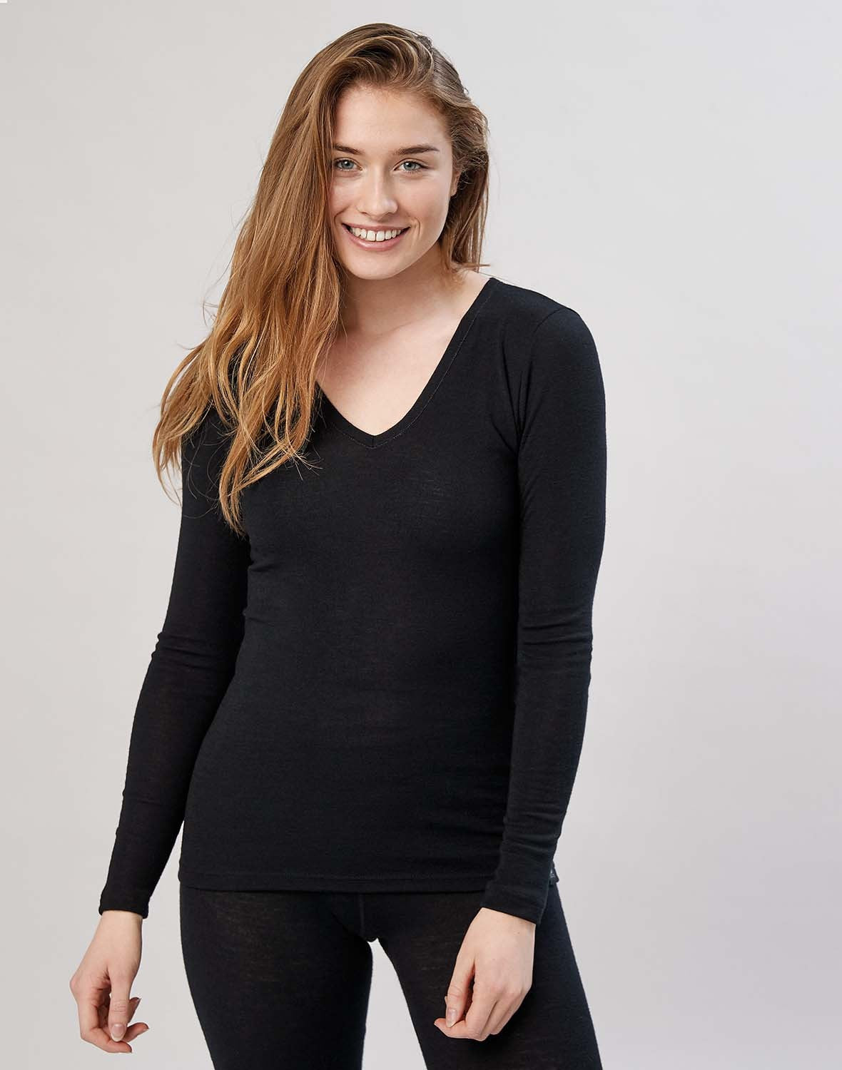 Splendid Women's Ribbed V Neck Tee Black Size Large
