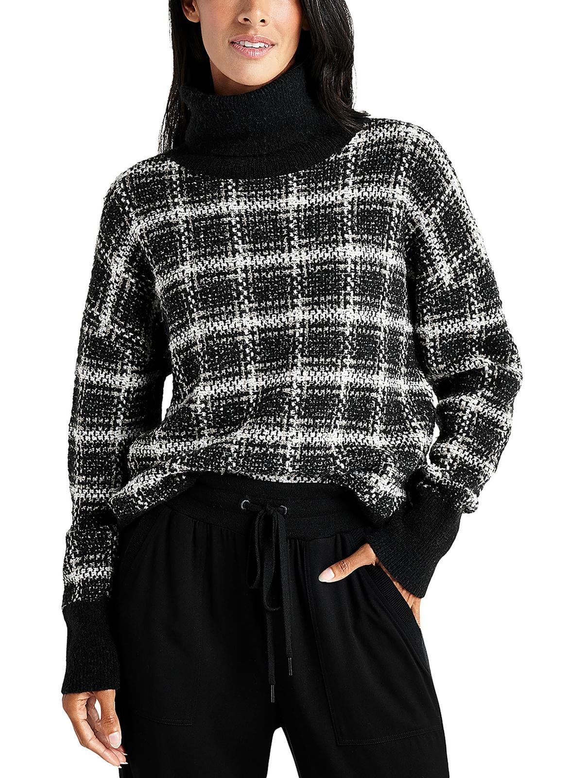 Splendid Ginny Plaid Turtleneck Sweater Black Size XL