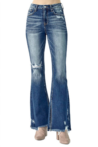 Risen - Women's Flare Distressed High Rise Slit Jeans