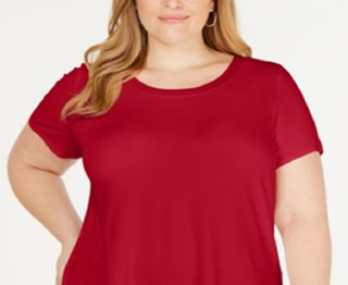 Alfani Women's Plus Satin Trim High Low T-Shirt Red Size 3X