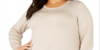 Alfani Women's Plus Round Neck Button Hem Sweater Brown Size 2X
