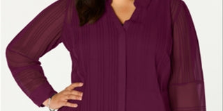 Alfani Women's Plus Sheer Pintuck Button Down Top Red Size 0X