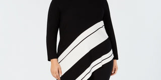 Alfani Women's Plus Size Asymmetrical-Hem Striped Sweater Black Size 0X