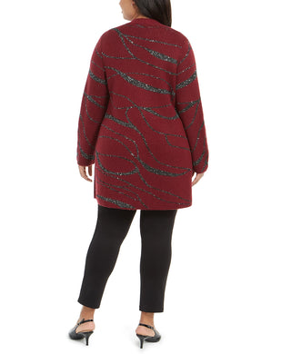 Alfani Women's Plus Sequin Swirl Cardigan Sweater Red Size 3X