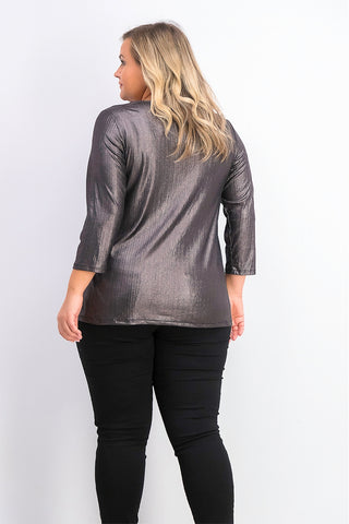 Alfani Women's Plus Size Metallic-Threaded V-Hem Top Black Size 3 X-Large
