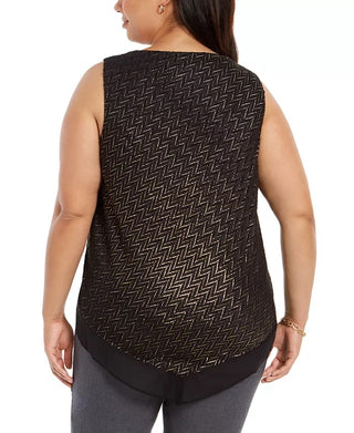 Alfani Women's Plus Size Metallic Twist-Front Top Black Size 1X
