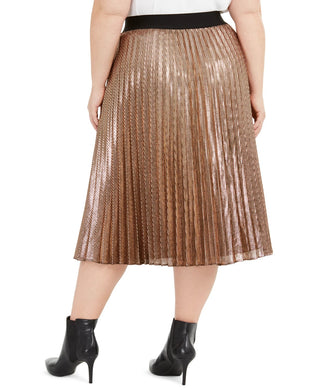 Alfani Women's Plus Size Pleated Metallic Midi Skirt Brown Size 1X