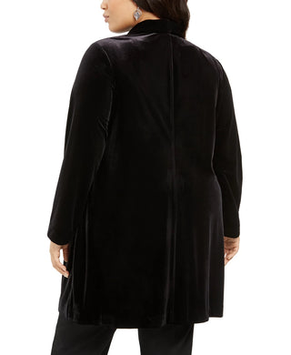 Alfani Women's Plus Size Open-Front Long Velvet Jacket  Black Size 0X