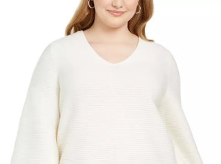 Alfani Women's Plus Size Ottoman-Stitch Sweater White Size 1X