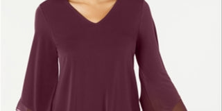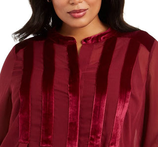 Alfani Women's Plus Velvet Trim Blouse Wine Size 1X
